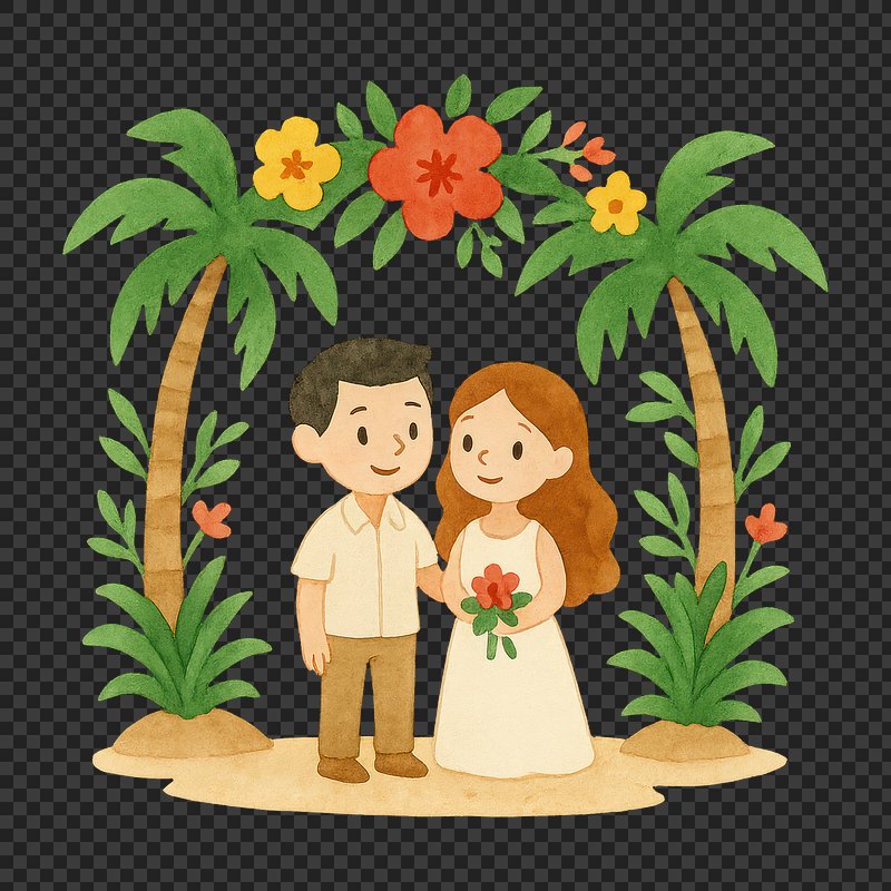 PNG Cute tropical wedding illustration. https://www.rawpixel.com/image/19178940/png-cute-tropical-wedding-illustrationView license