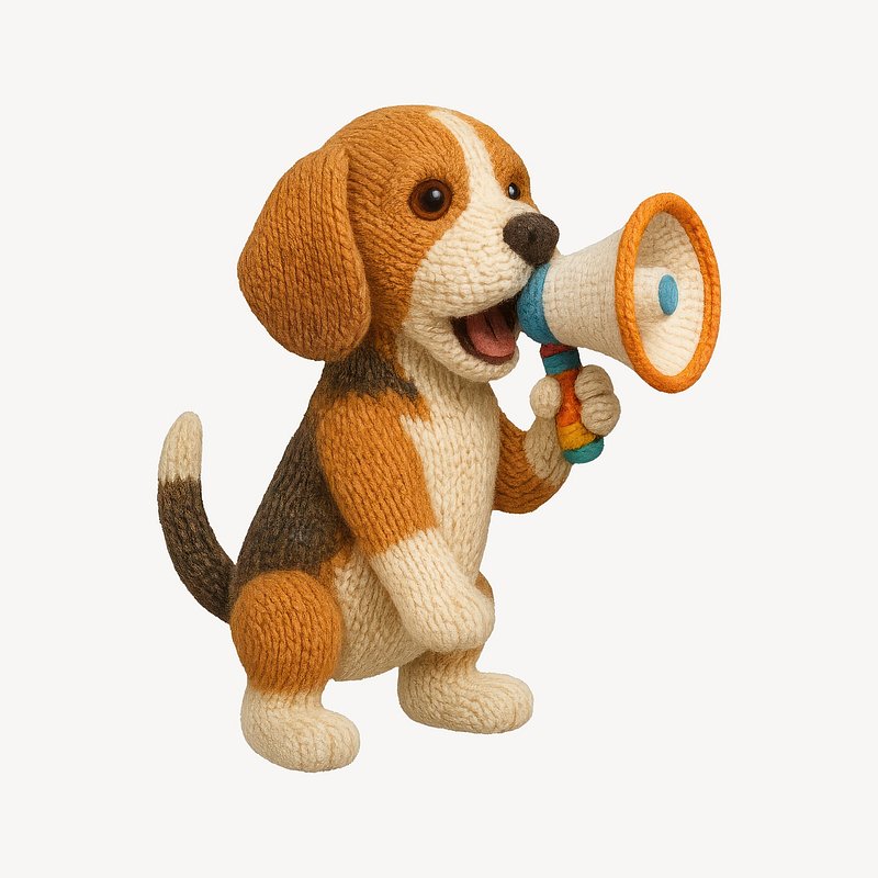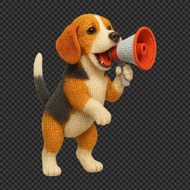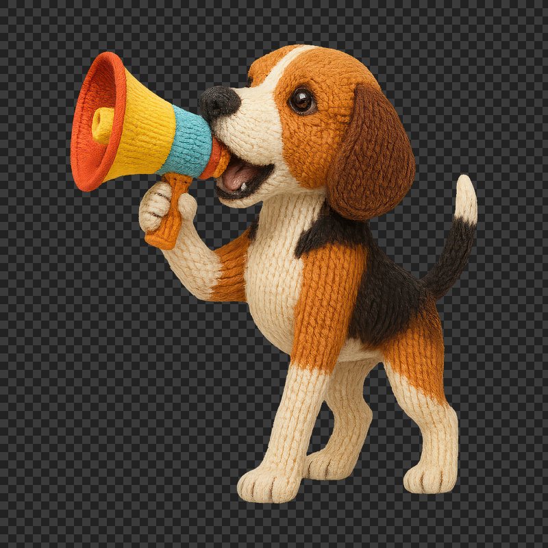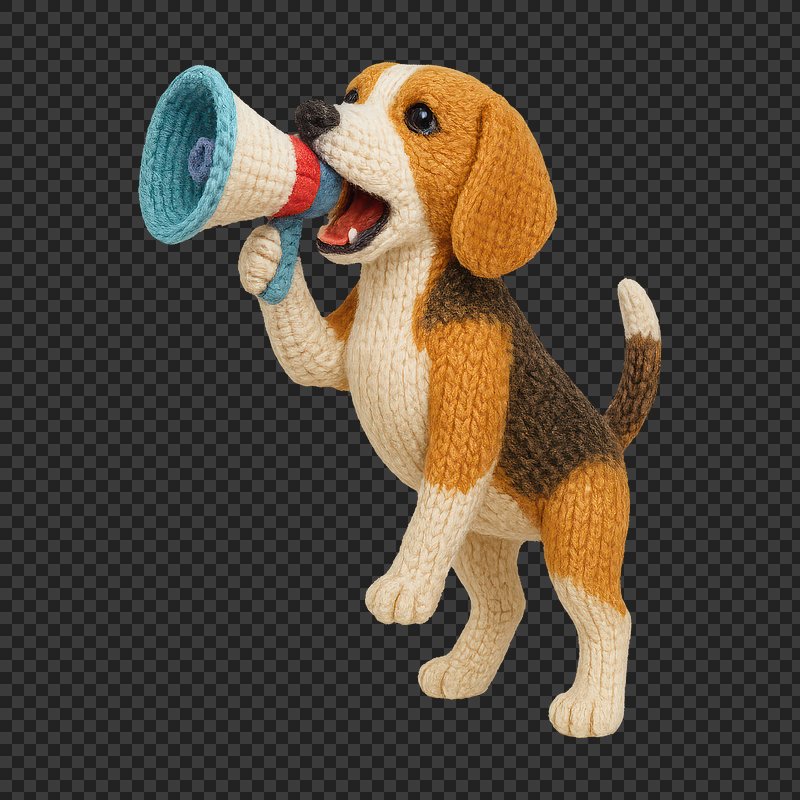 PNG Knitted beagle with megaphone. https://www.rawpixel.com/image/24441015/png-knitted-beagle-with-megaphoneView license