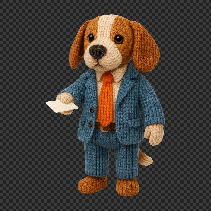 PNG Crocheted dog in business attire. https://www.rawpixel.com/image/24444326/png-crocheted-dog-business-attireView license