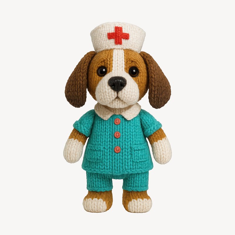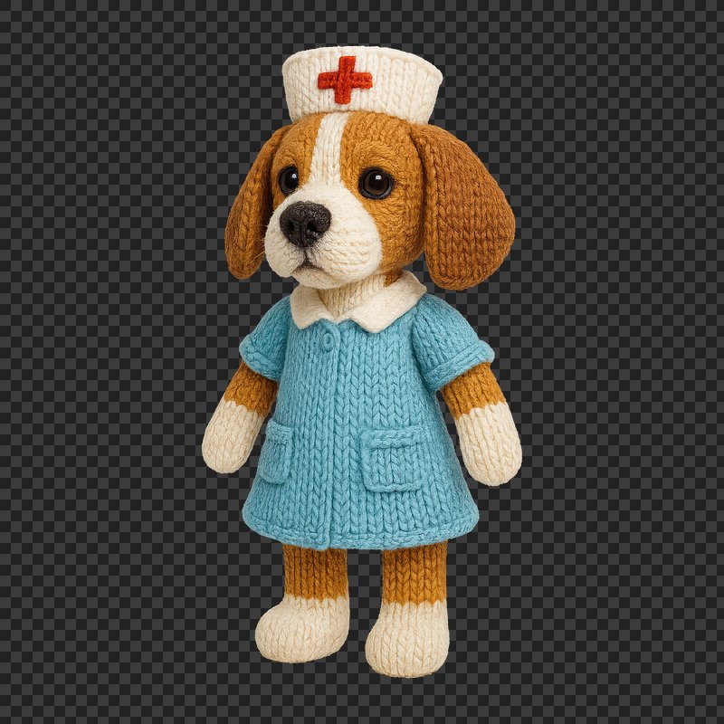 PNG Cute knitted nurse dog illustration. https://www.rawpixel.com/image/24444666/png-cute-knitted-nurse-dog-illustrationView license