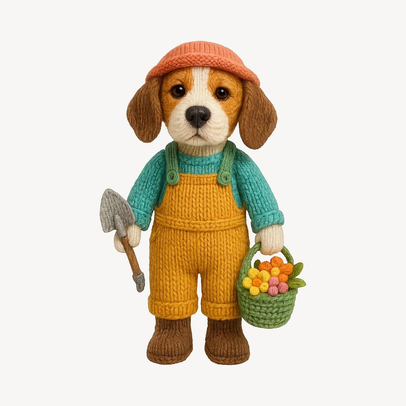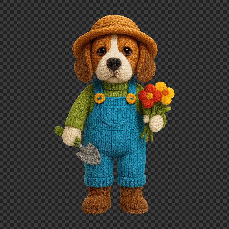 PNG Cute knitted dog gardener https://www.rawpixel.com/image/24446388/png-cute-knitted-dog-gardenerView license