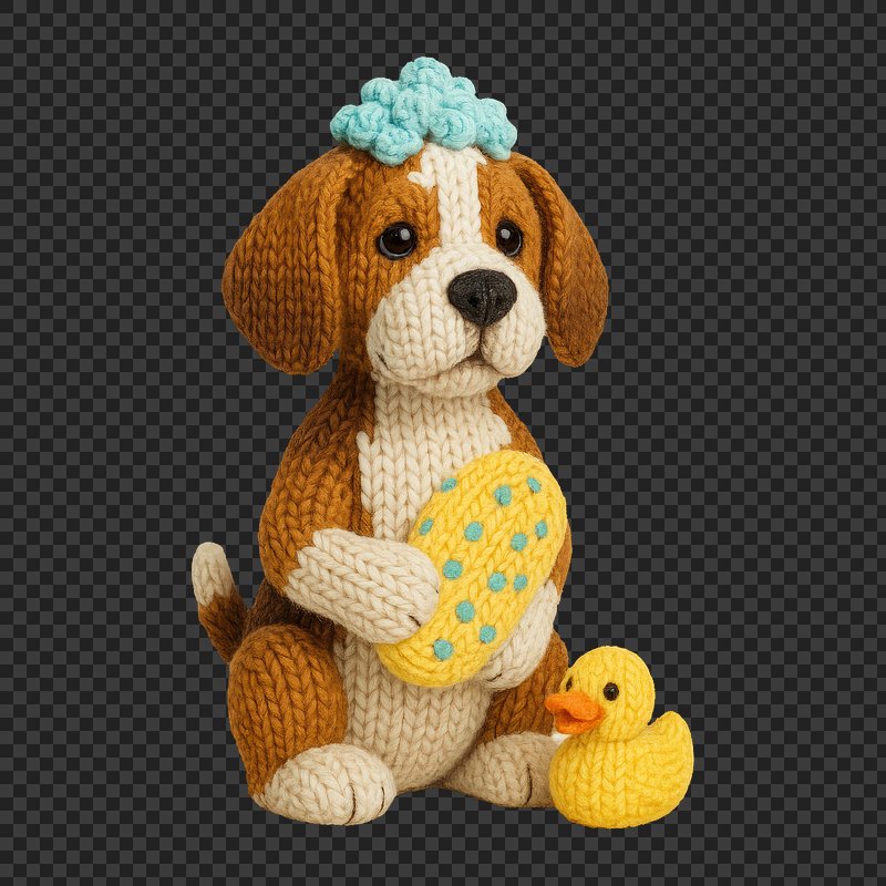 PNG Crocheted puppy with bath accessories. https://www.rawpixel.com/image/24446425/png-crocheted-puppy-with-bath-accessoriesView license