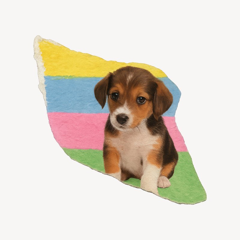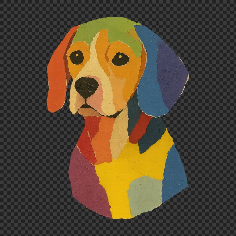 PNG Colorful paper collage beagle illustration. https://www.rawpixel.com/image/24448432/png-colorful-paper-collage-beagle-illustrationView license