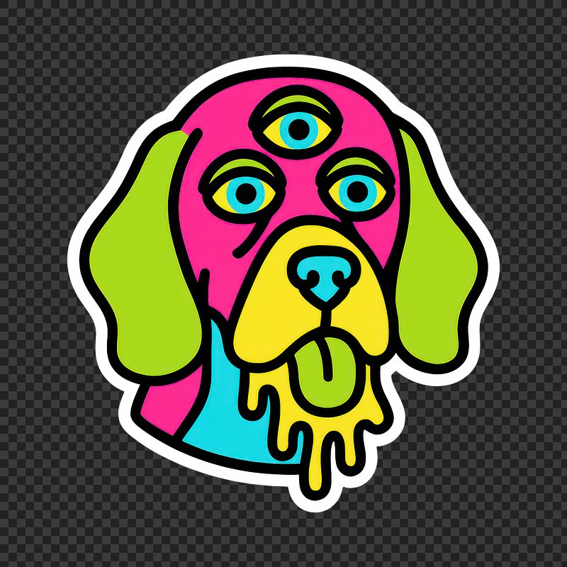 PNG Colorful psychedelic three-eyed dog https://www.rawpixel.com/image/23942397/png-colorful-psychedelic-three-eyed-dogView license