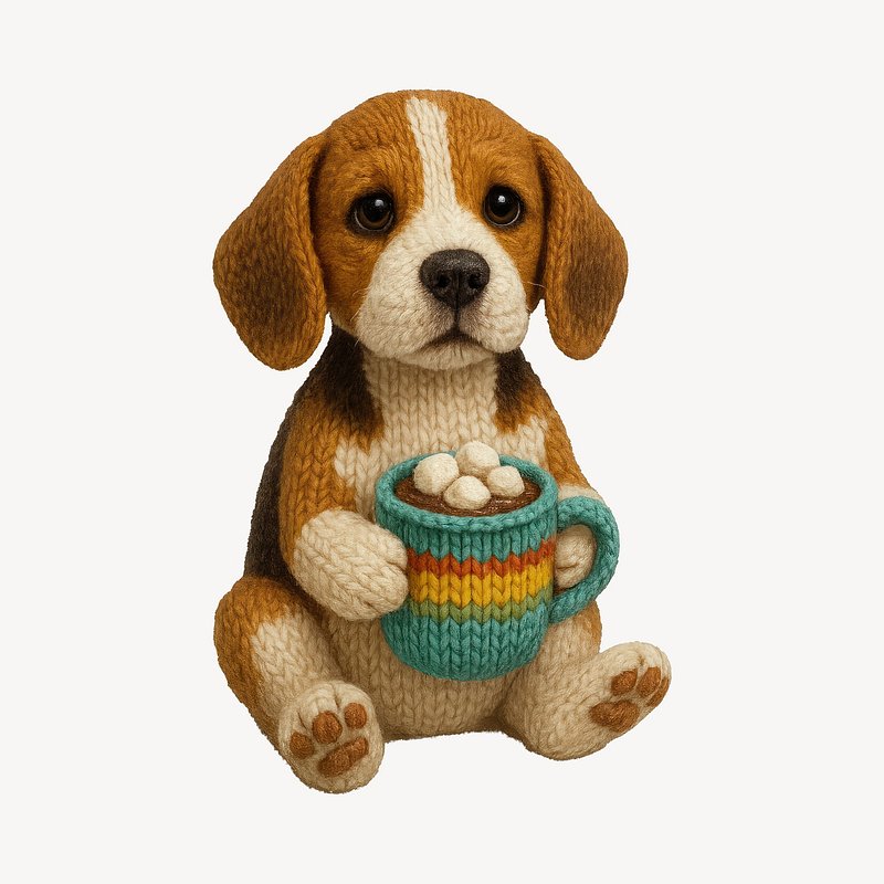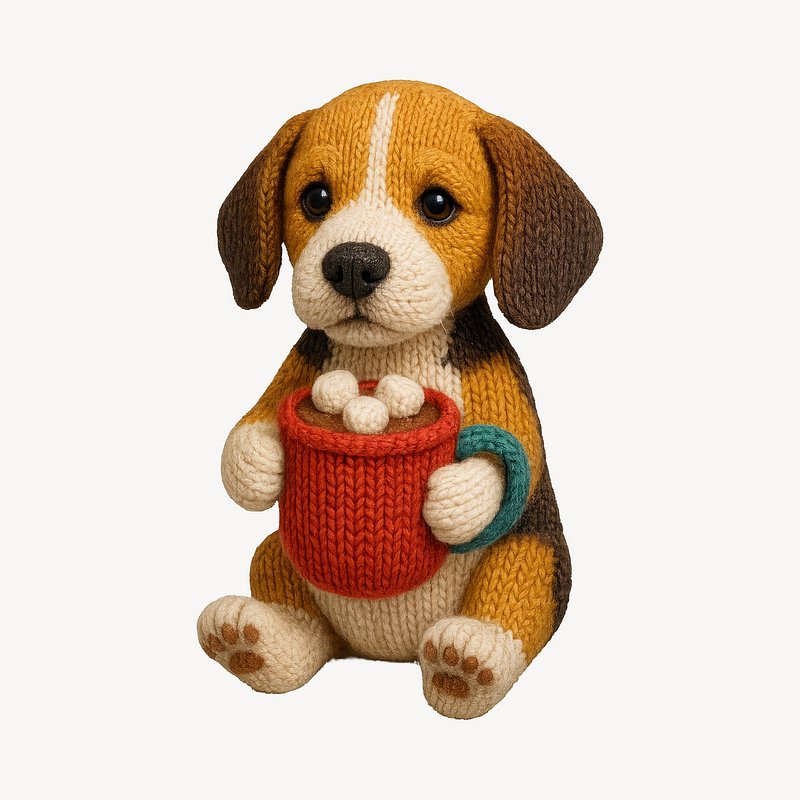 Cute knitted puppy holding mug https://www.rawpixel.com/image/24531189/cute-knitted-puppy-holding-mugView license