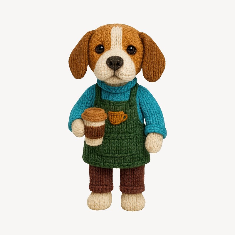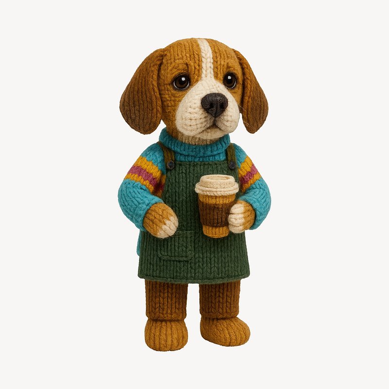 Cute knitted dog holding coffee. https://www.rawpixel.com/image/24531719/cute-knitted-dog-holding-coffeeView license