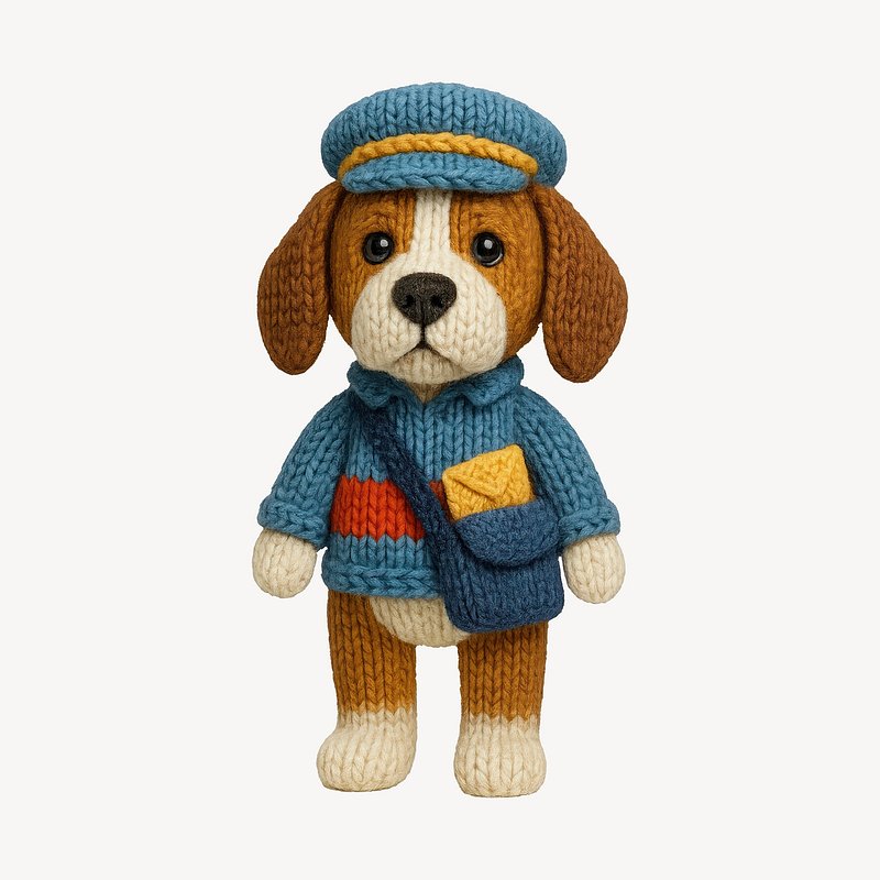 Cute knitted dog postman https://www.rawpixel.com/image/24531614/cute-knitted-dog-postmanView license