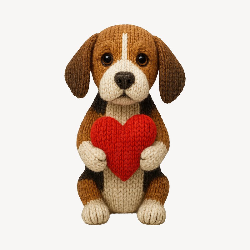 Cute knitted dog holding heart. https://www.rawpixel.com/image/24532855/cute-knitted-dog-holding-heartView license