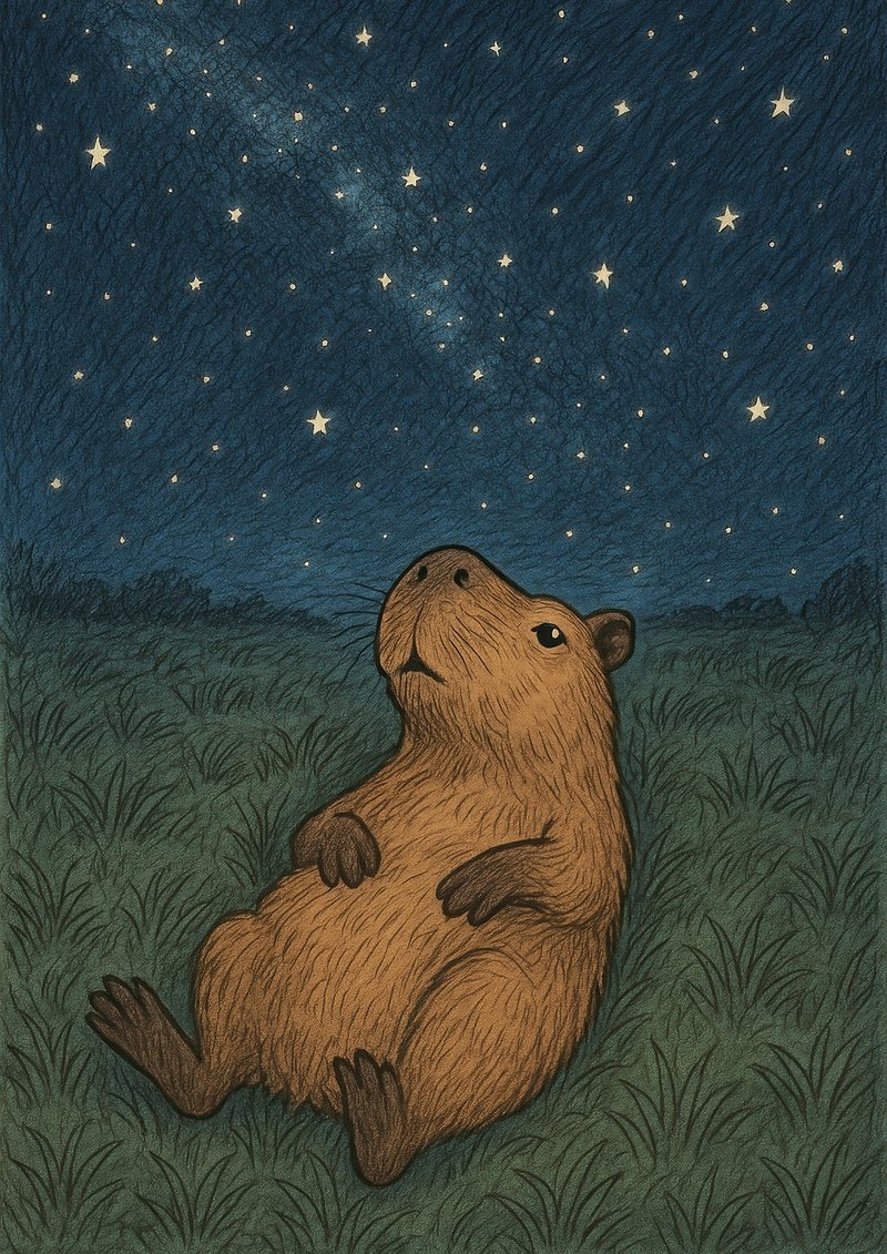 Capybara stargazing under night sky. https://www.rawpixel.com/image/17783737/capybara-stargazing-under-night-skyView license