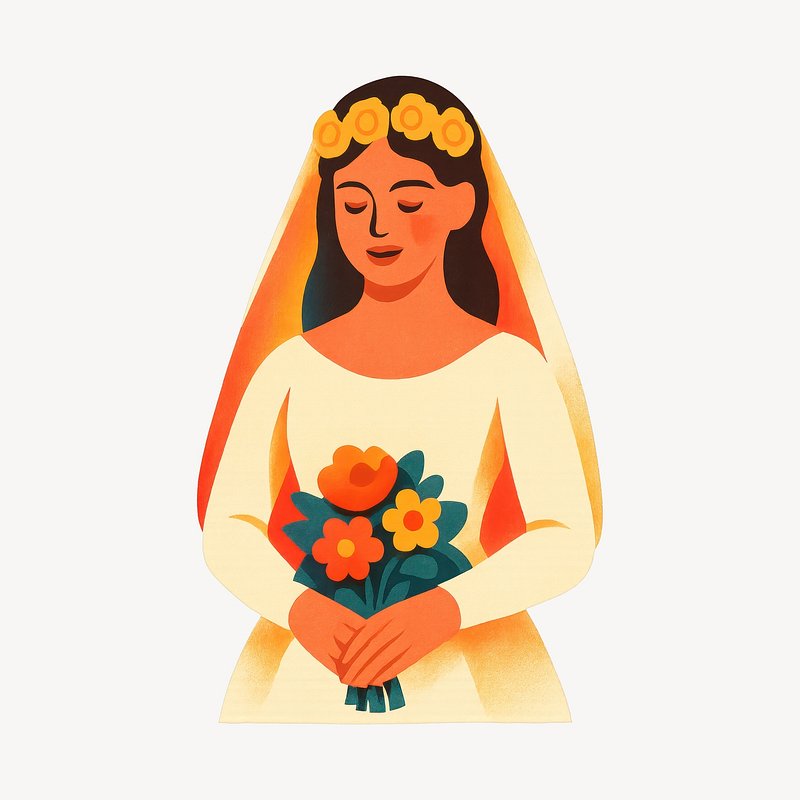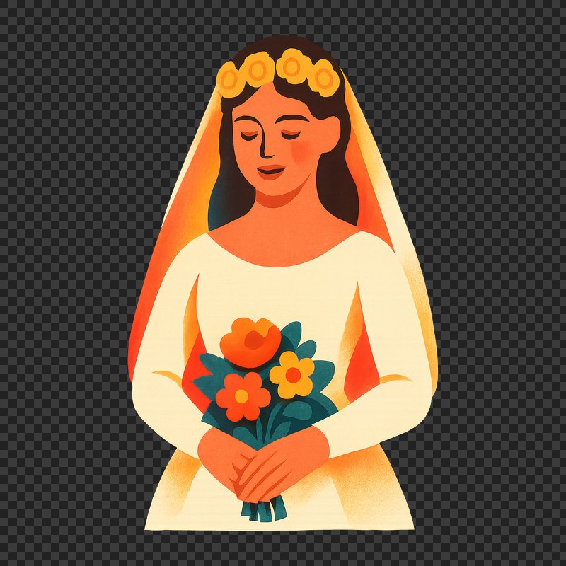 PNG Bride holding vibrant floral bouquet. https://www.rawpixel.com/image/24731069/png-bride-holding-vibrant-floral-bouquetView license