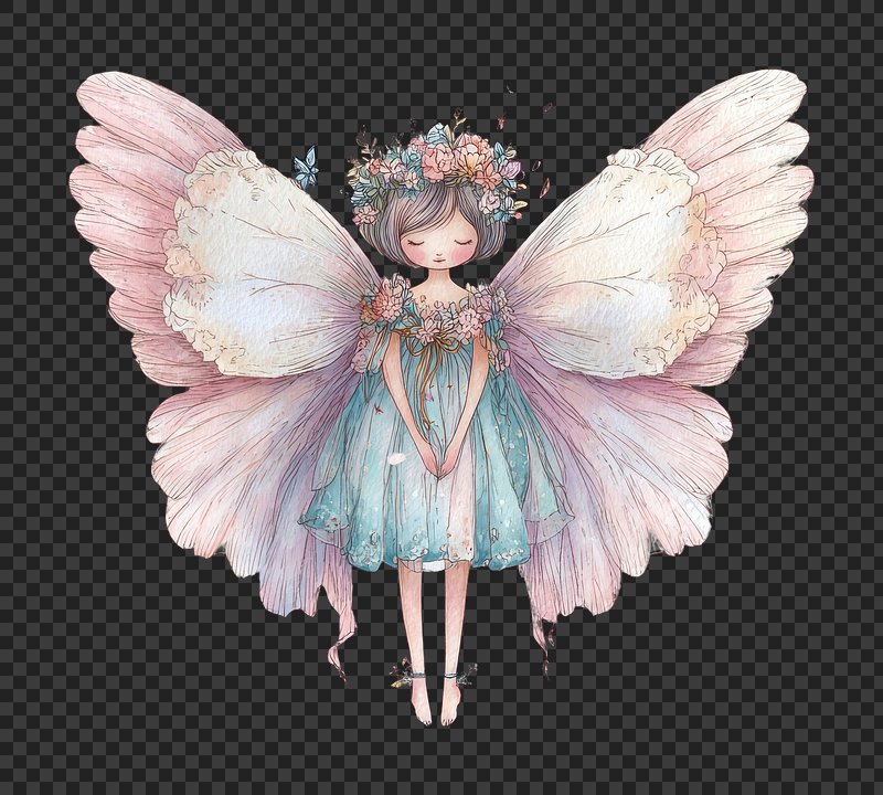 PNG Whimsical fairy with floral wings. https://www.rawpixel.com/image/25816505/png-whimsical-fairy-with-floral-wingsView license