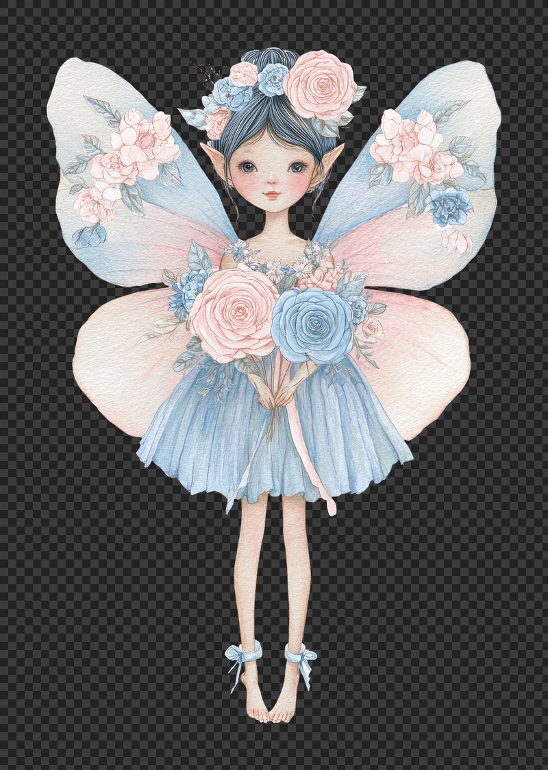 PNG Delicate fairy with floral wings. https://www.rawpixel.com/image/25815421/png-delicate-fairy-with-floral-wingsView license