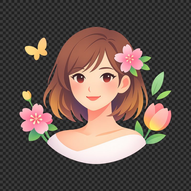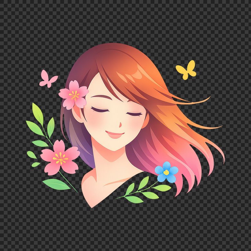 PNG Serene woman with floral elements. https://www.rawpixel.com/image/25510467/png-serene-woman-with-floral-elementsView license