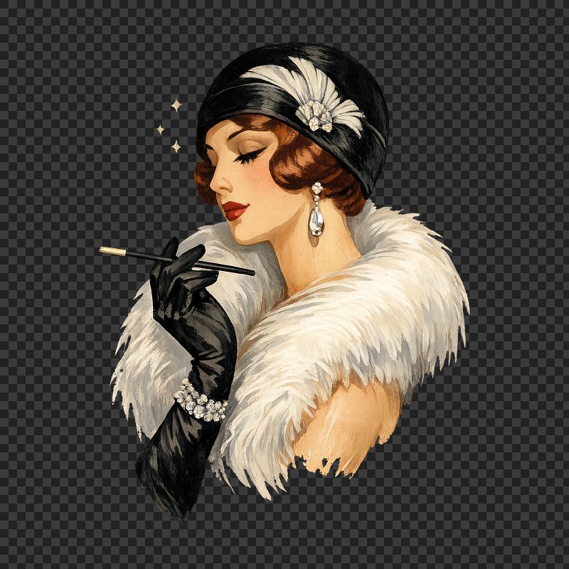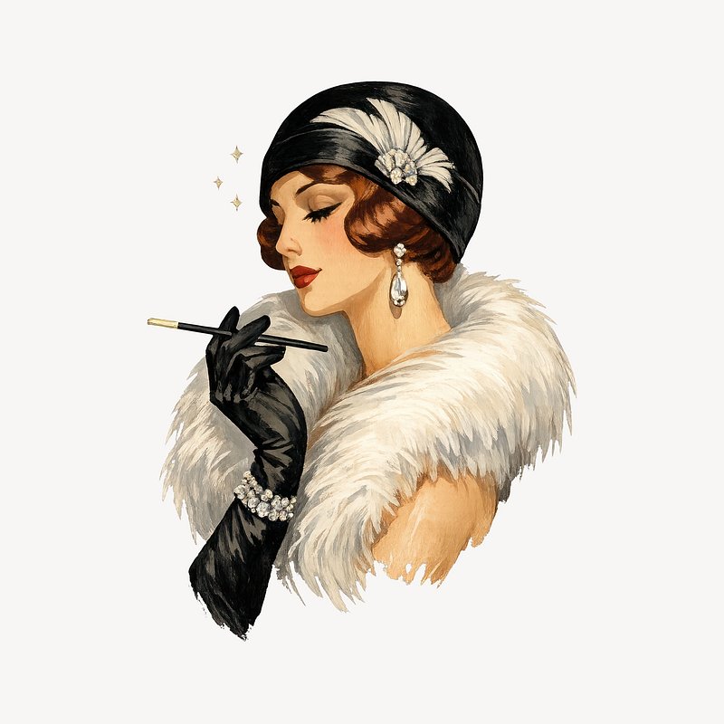 Elegant vintage flapper illustration https://www.rawpixel.com/image/25736416/elegant-vintage-flapper-illustrationView license