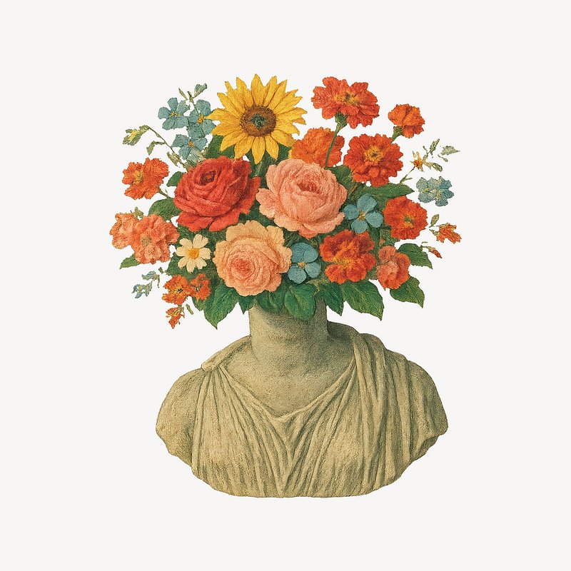 Floral sculpture head illustration https://www.rawpixel.com/image/22118214/floral-sculpture-head-illustrationView license