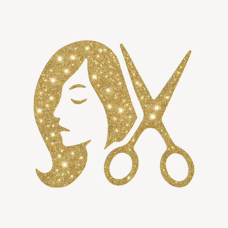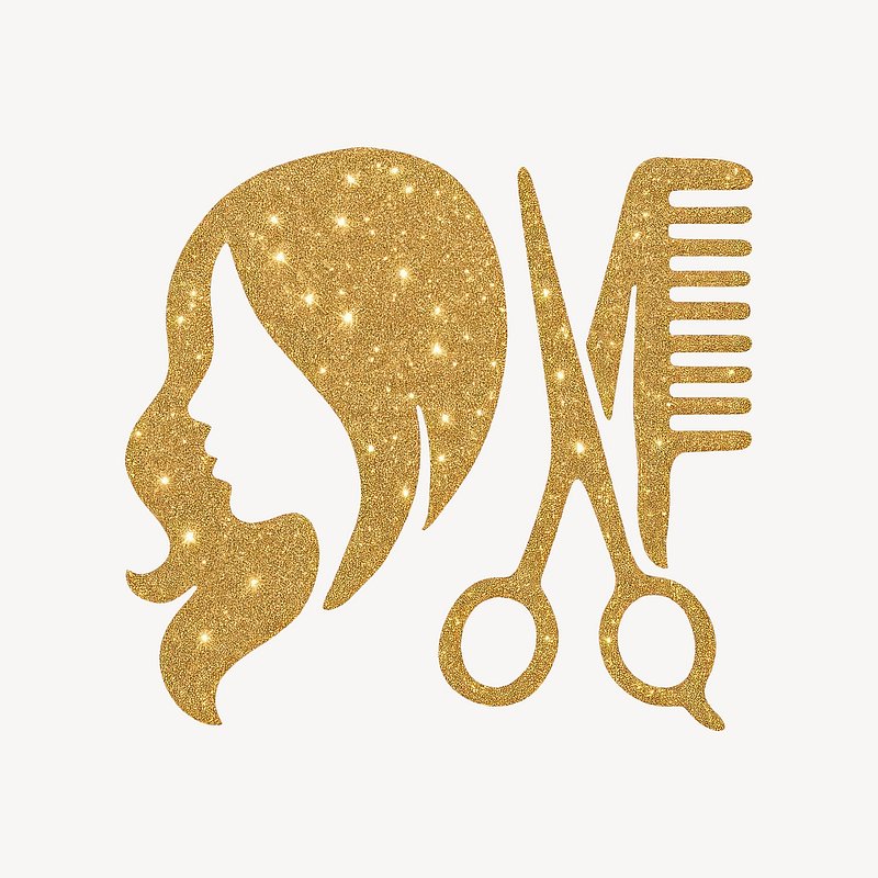 Golden glitter hair salon logo. https://www.rawpixel.com/image/22863554/golden-glitter-hair-salon-logoView license