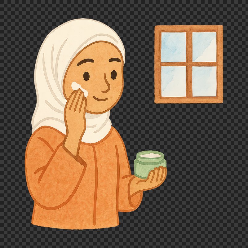 PNG Skincare routine with hijab illustration. https://www.rawpixel.com/image/19213925/png-skincare-routine-with-hijab-illustrationView license