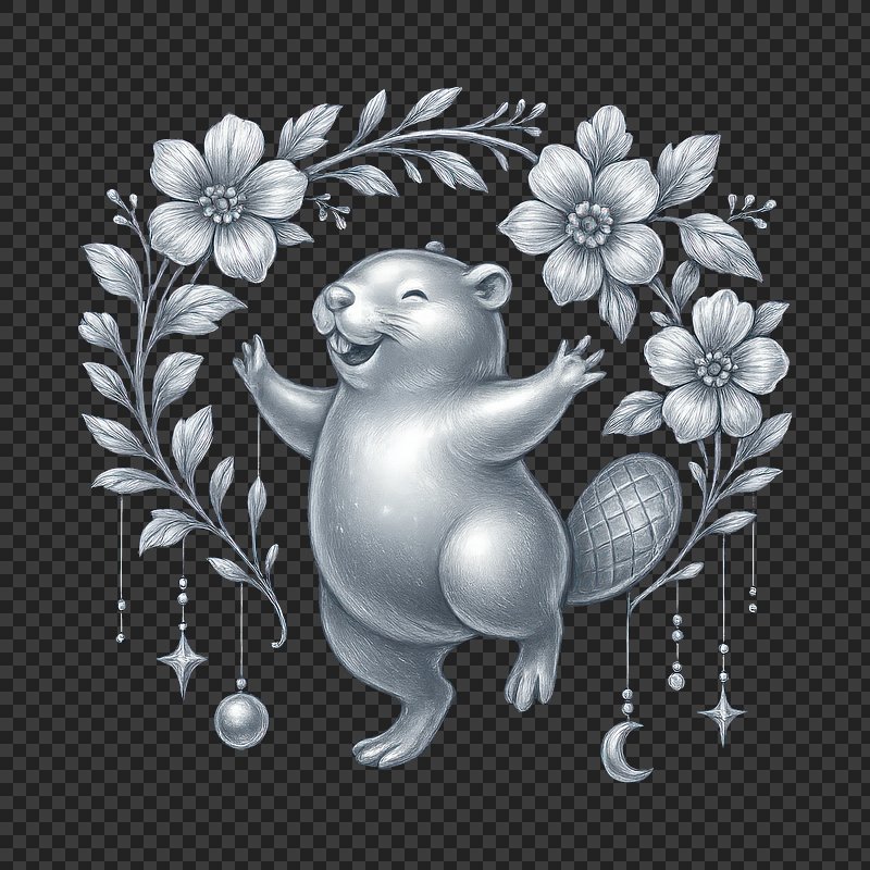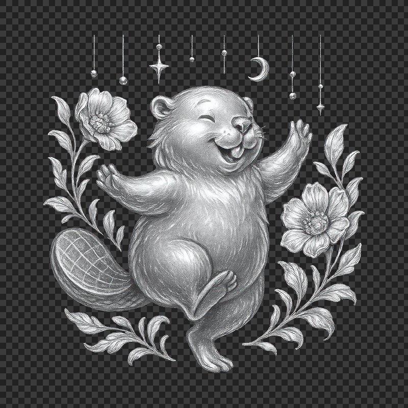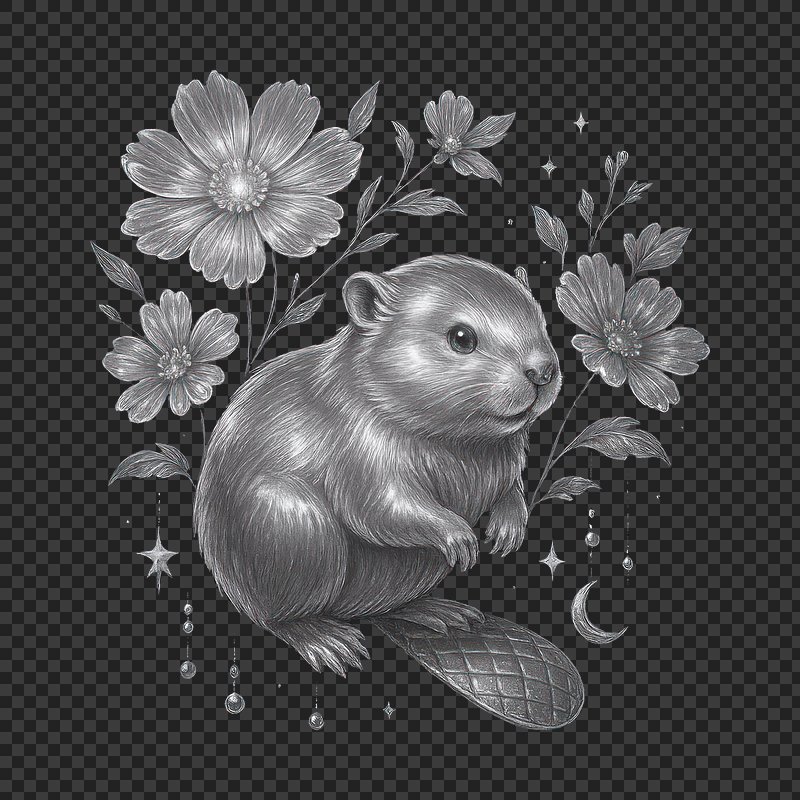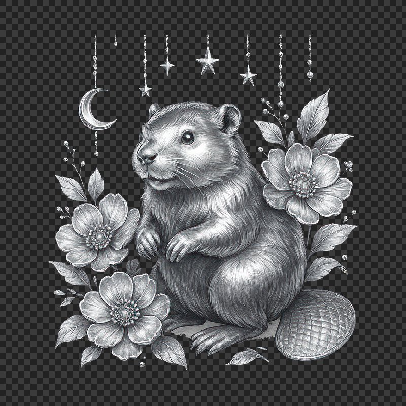 PNG Beaver with floral moon https://www.rawpixel.com/image/23543043/png-beaver-with-floral-moonView license