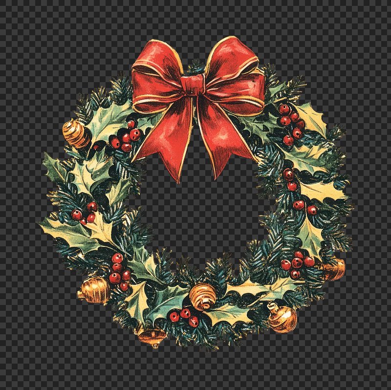 PNG Festive wreath with red bow. https://www.rawpixel.com/image/24017010/png-festive-wreath-with-red-bowView license