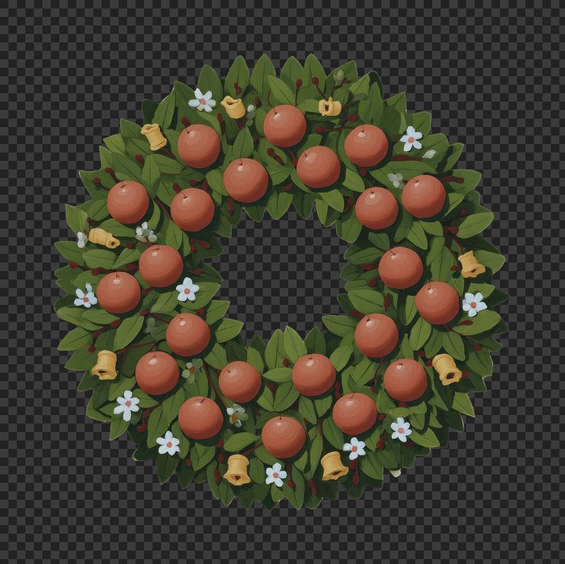 PNG Festive wreath with apples. https://www.rawpixel.com/image/24016809/png-festive-wreath-with-applesView license