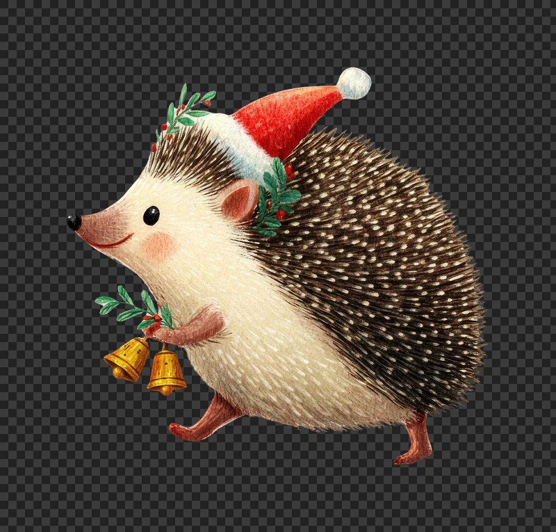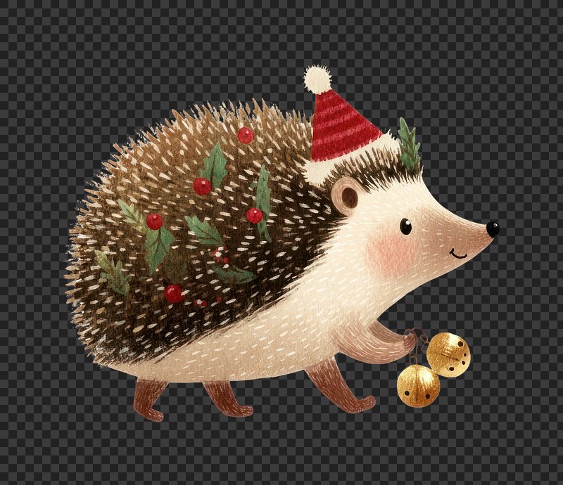 PNG Festive hedgehog illustration with bells. https://www.rawpixel.com/image/24022666/png-festive-hedgehog-illustration-with-bellsView license