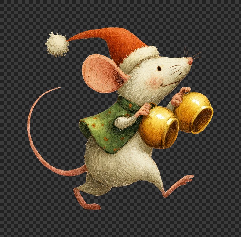 PNG Festive mouse carrying golden bells. https://www.rawpixel.com/image/24022018/png-festive-mouse-carrying-golden-bellsView license