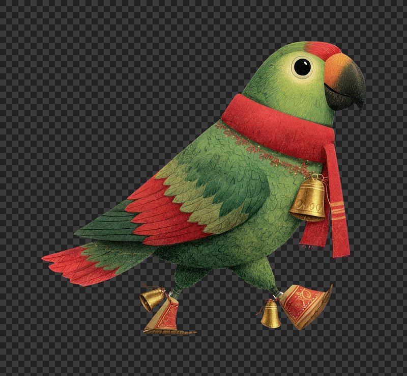 PNG Festive parrot with decorative bells. https://www.rawpixel.com/image/24022075/png-festive-parrot-with-decorative-bellsView license