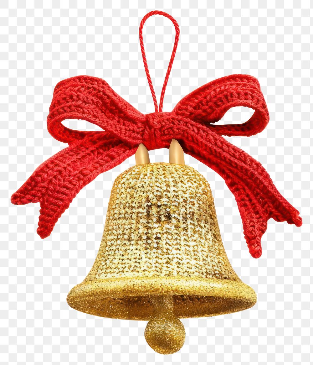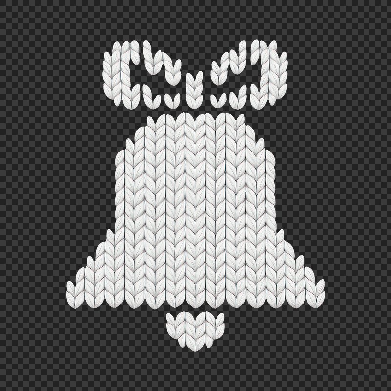 PNG Knitted bell with bow design. https://www.rawpixel.com/image/24603462/png-knitted-bell-with-bow-designView license
