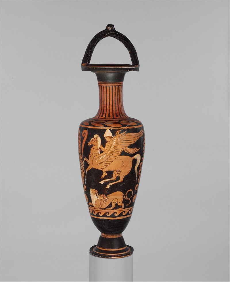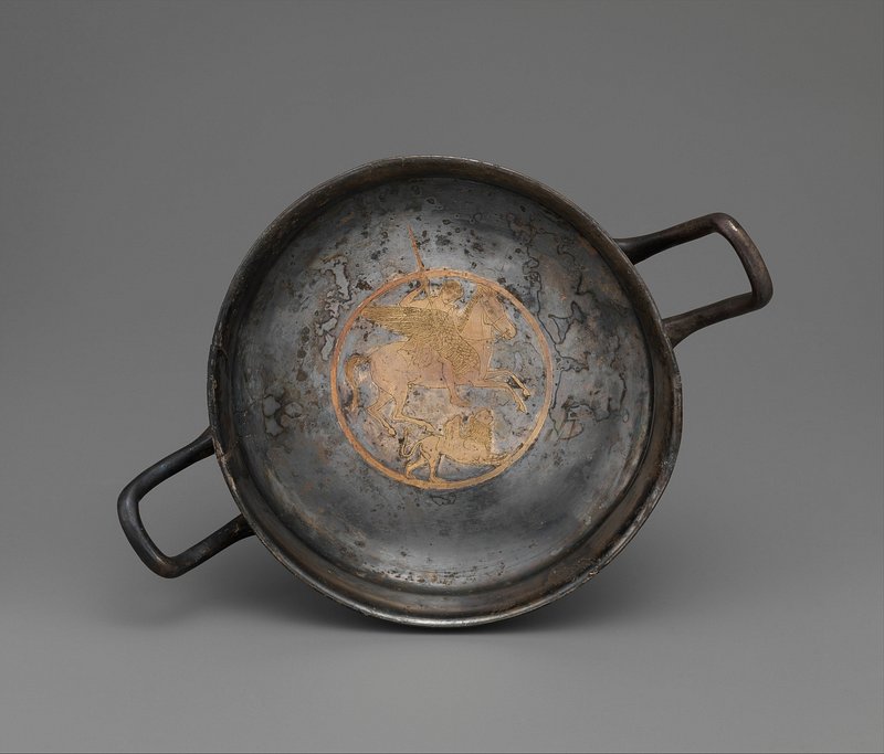 Red-Figure Situla (Deep Bucket): Bellerophon Slaying Chimaera (A); Dionysos, Maenads, Eros (B) by Group of the Dublin Situlae https://www.rawpixel.com/image/9696913/photo-image-lion-fire-horseFree Image from public domain license
