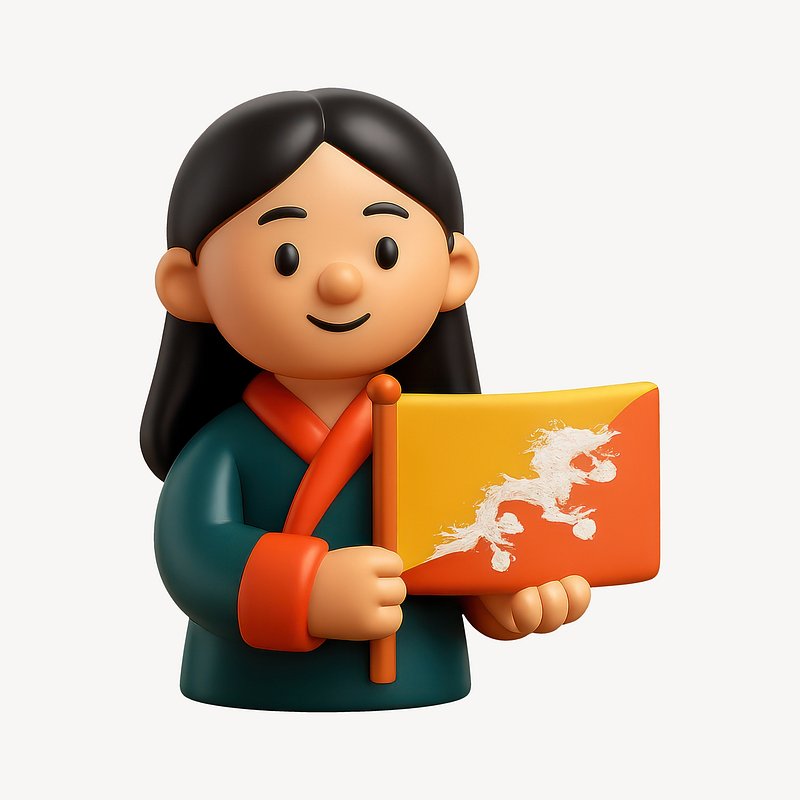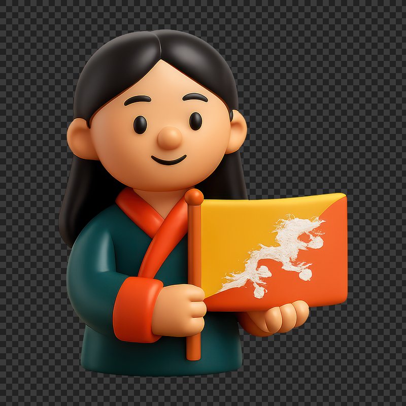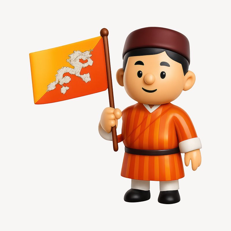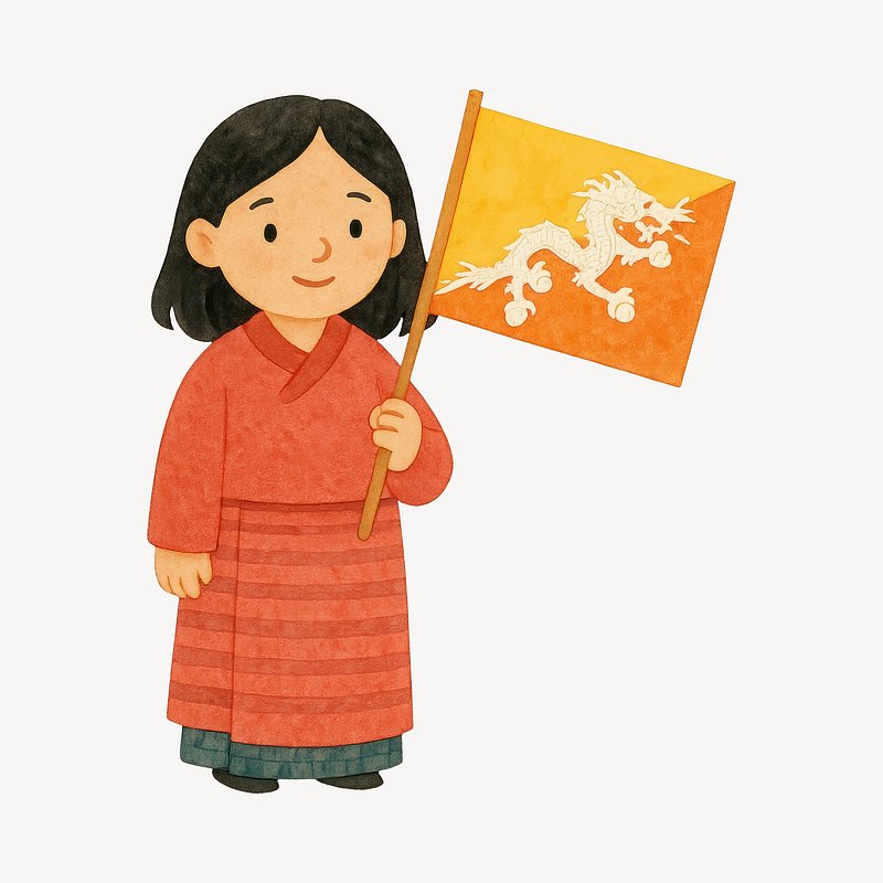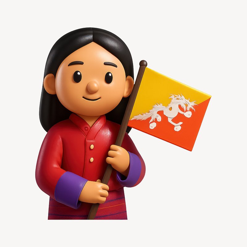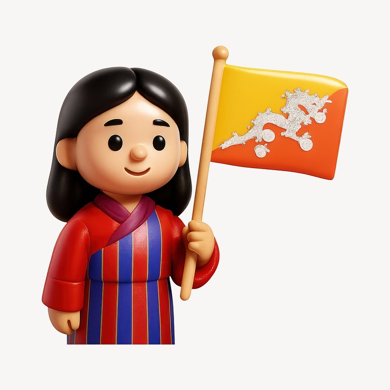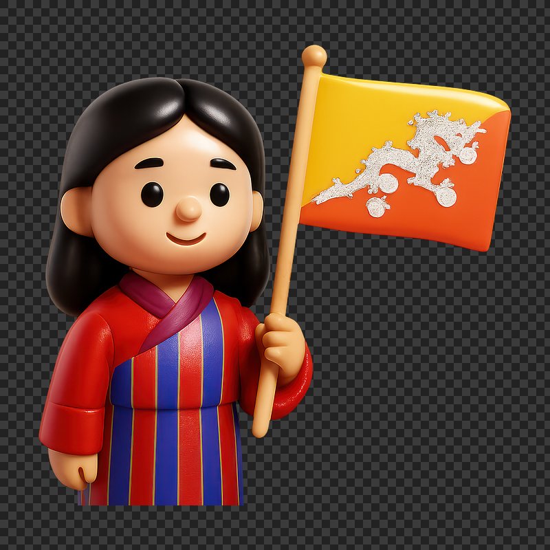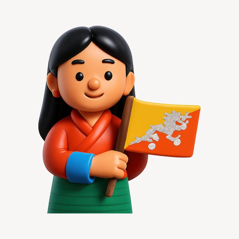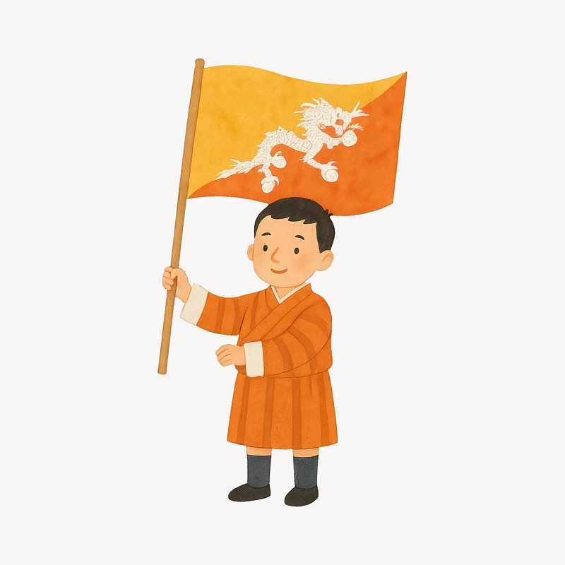 Cartoon character holding Bhutan flag. https://www.rawpixel.com/image/20343873/cartoon-character-holding-bhutan-flagView license