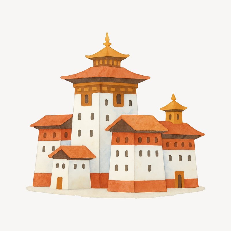 Traditional Bhutanese temple illustration. https://www.rawpixel.com/image/19236268/traditional-bhutanese-temple-illustrationView license