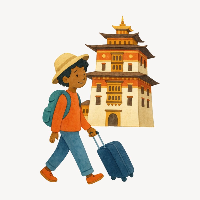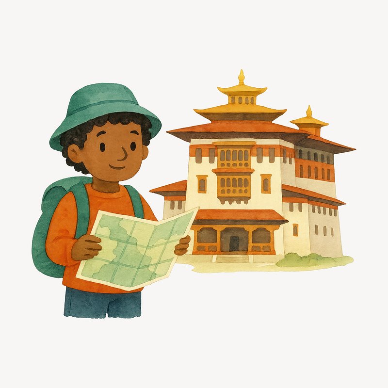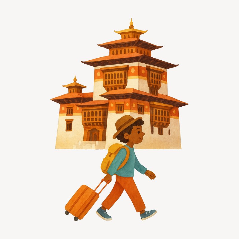 PNG Traveler exploring Bhutanese architecture. https://www.rawpixel.com/image/18918914/png-traveler-exploring-bhutanese-architectureView license