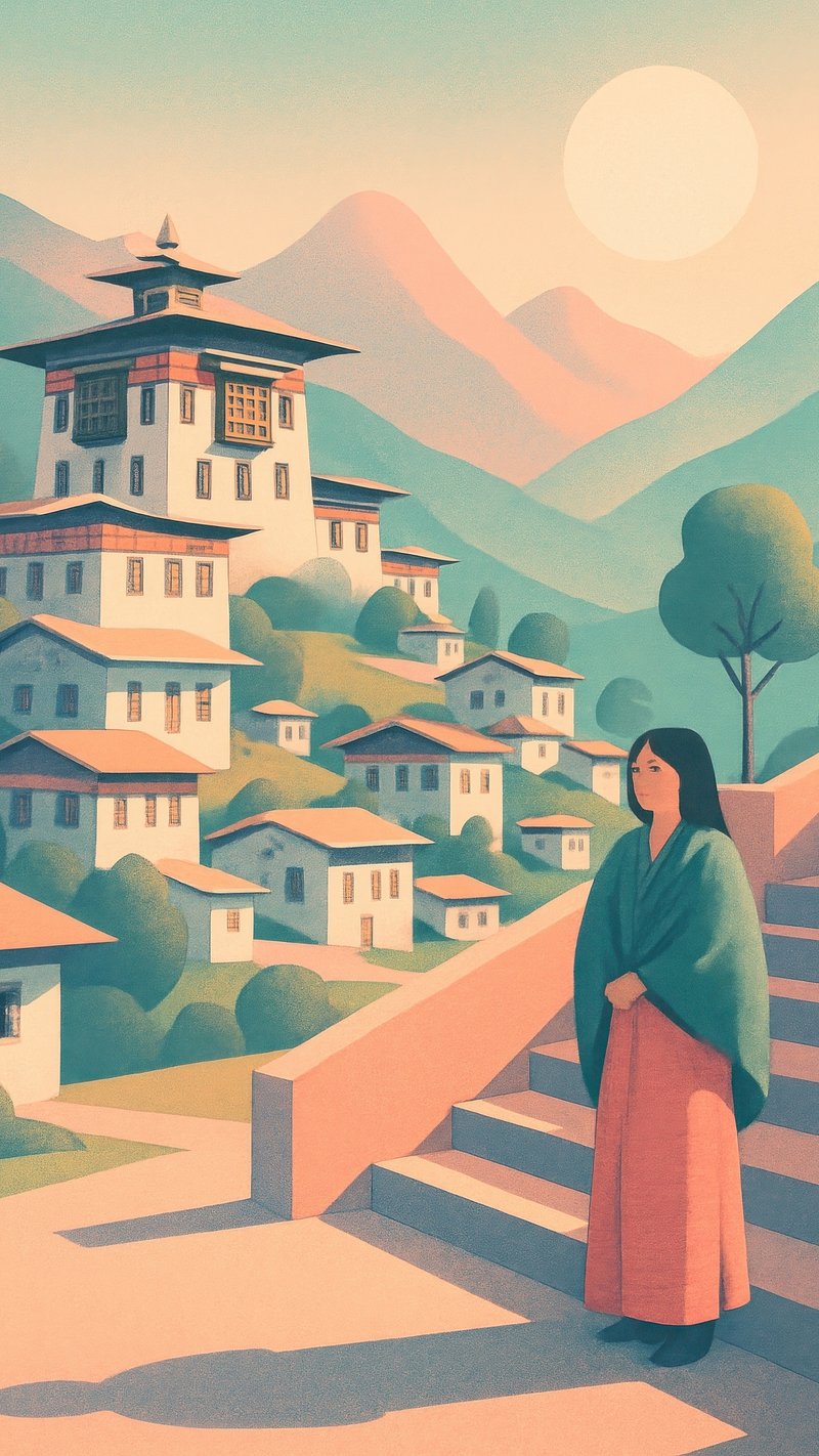 Serene Bhutanese landscape illustration. https://www.rawpixel.com/image/22900490/serene-bhutanese-landscape-illustrationView license