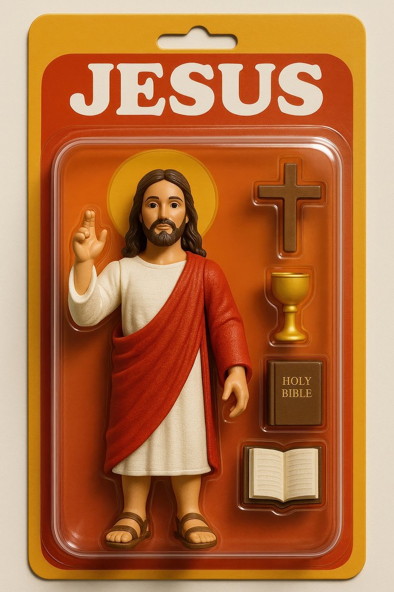 Religious action figure packaging. https://www.rawpixel.com/image/17719282/religious-action-figure-packagingView license