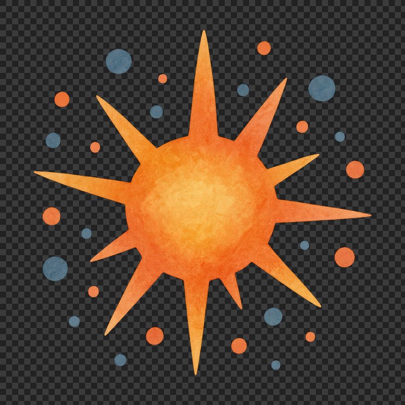 PNG Vibrant watercolor sun illustration. https://www.rawpixel.com/image/18745214/png-vibrant-watercolor-sun-illustrationView license