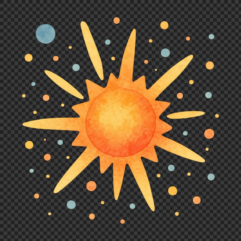 PNG Vibrant watercolor sun illustration. https://www.rawpixel.com/image/18744104/png-vibrant-watercolor-sun-illustrationView license