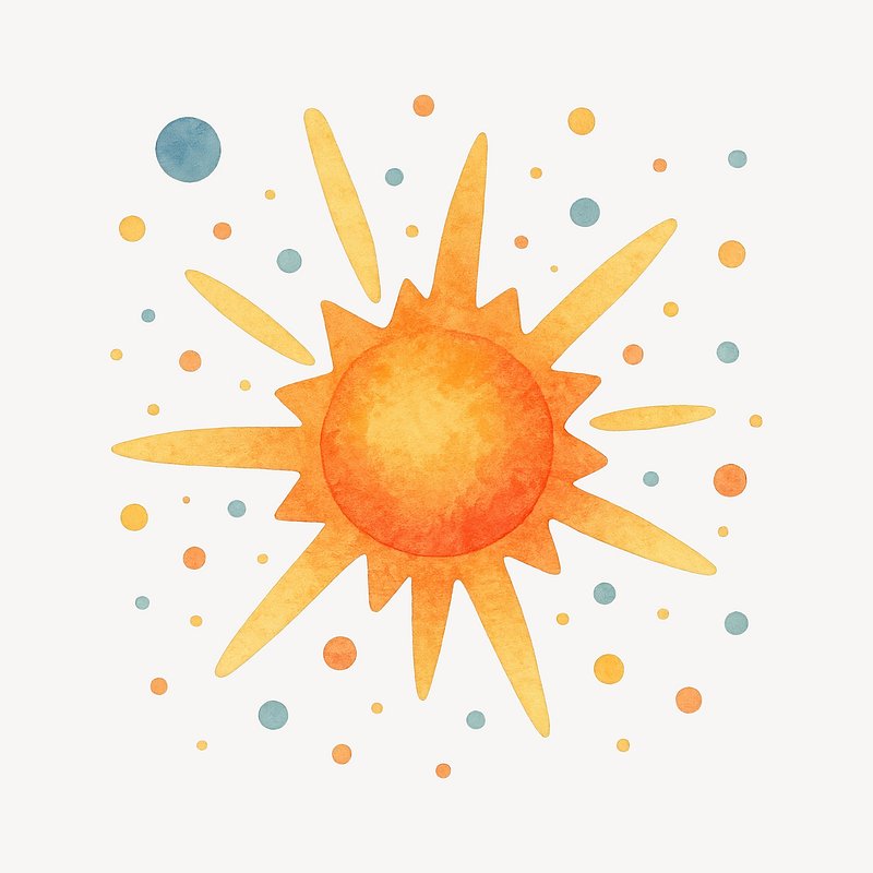 Vibrant watercolor sun illustration. https://www.rawpixel.com/image/19257351/vibrant-watercolor-sun-illustrationView license