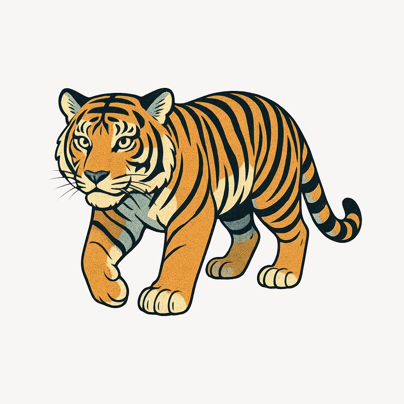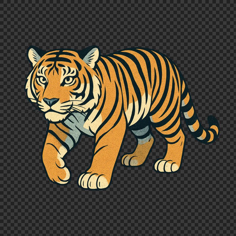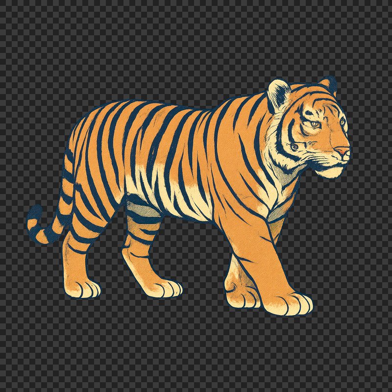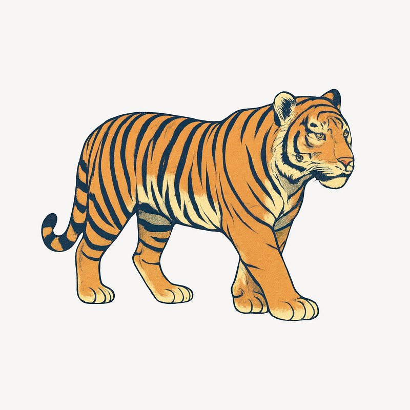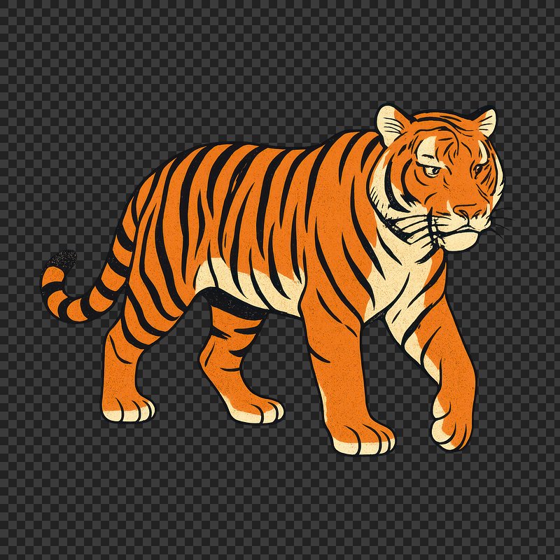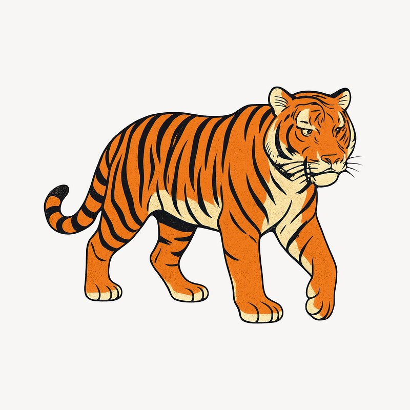 Illustrated tiger walking gracefully. https://www.rawpixel.com/image/24720334/illustrated-tiger-walking-gracefullyView license