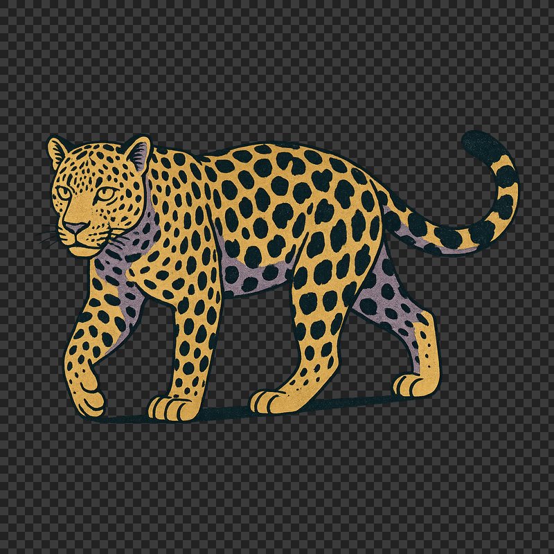 PNG Illustrated leopard walking gracefully. https://www.rawpixel.com/image/24632687/png-illustrated-leopard-walking-gracefullyView license