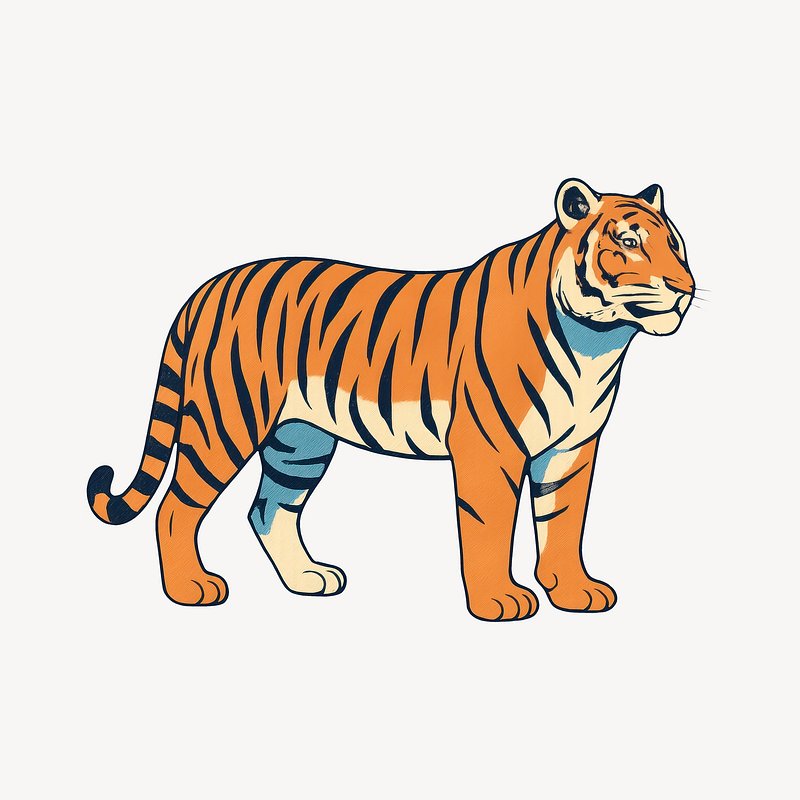 Illustrated tiger standing proudly. https://www.rawpixel.com/image/24720185/illustrated-tiger-standing-proudlyView license