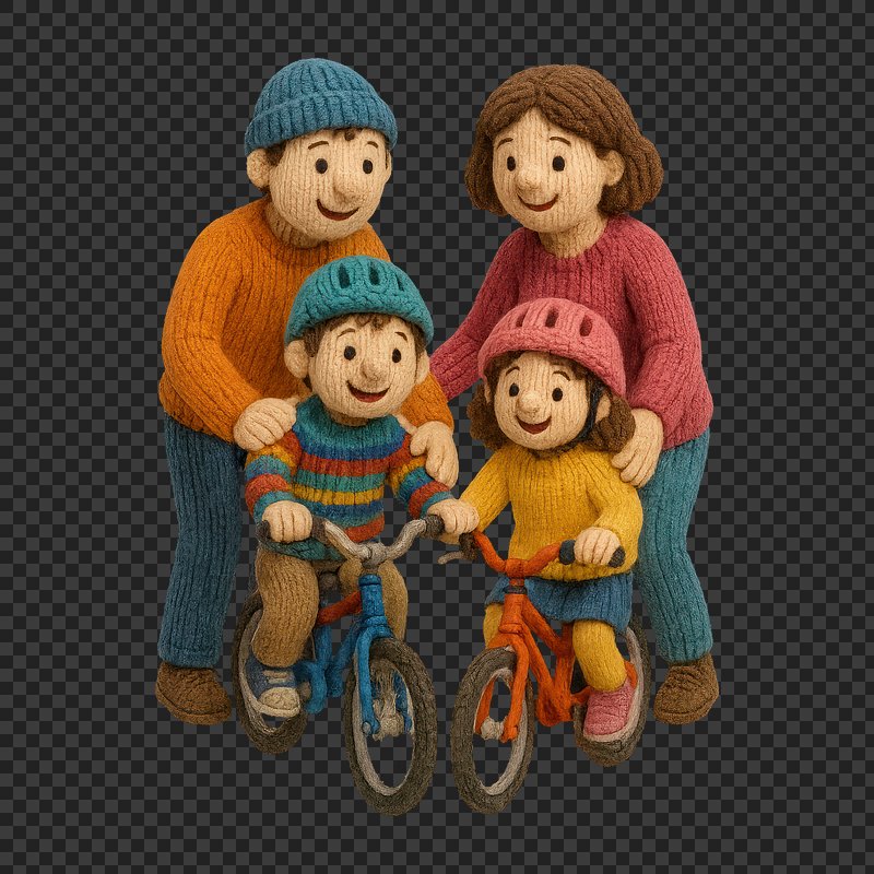 PNG Family cycling knitted dolls illustration. https://www.rawpixel.com/image/24443429/png-family-cycling-knitted-dolls-illustrationView license