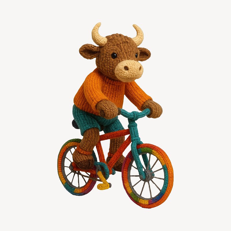 Colorful knitted bull cycling https://www.rawpixel.com/image/24533610/colorful-knitted-bull-cyclingView license