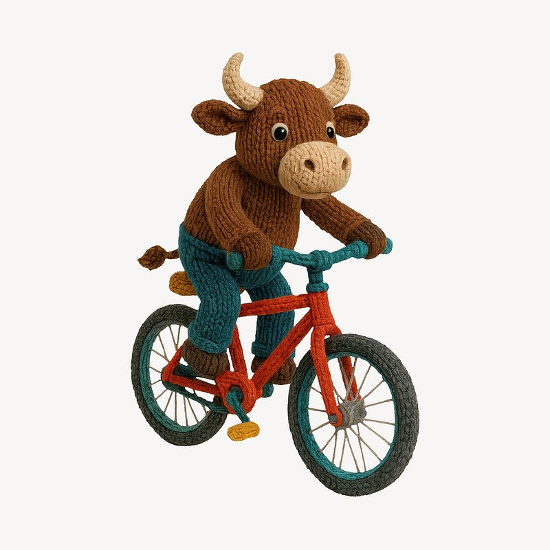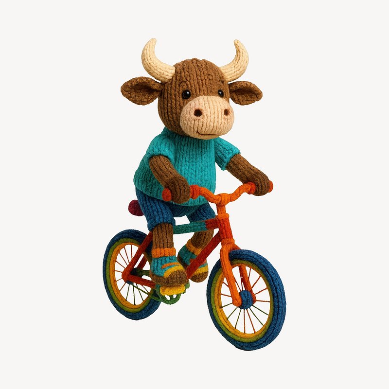 Knitted bull riding bicycle https://www.rawpixel.com/image/24532510/knitted-bull-riding-bicycleView license