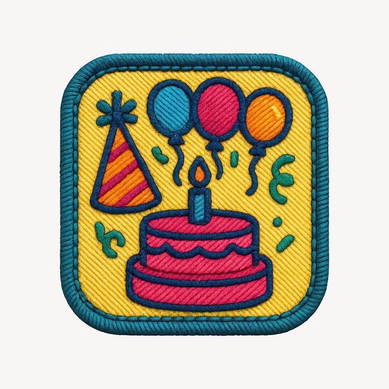 Colorful embroidered birthday patch https://www.rawpixel.com/image/22272725/colorful-embroidered-birthday-patchView license