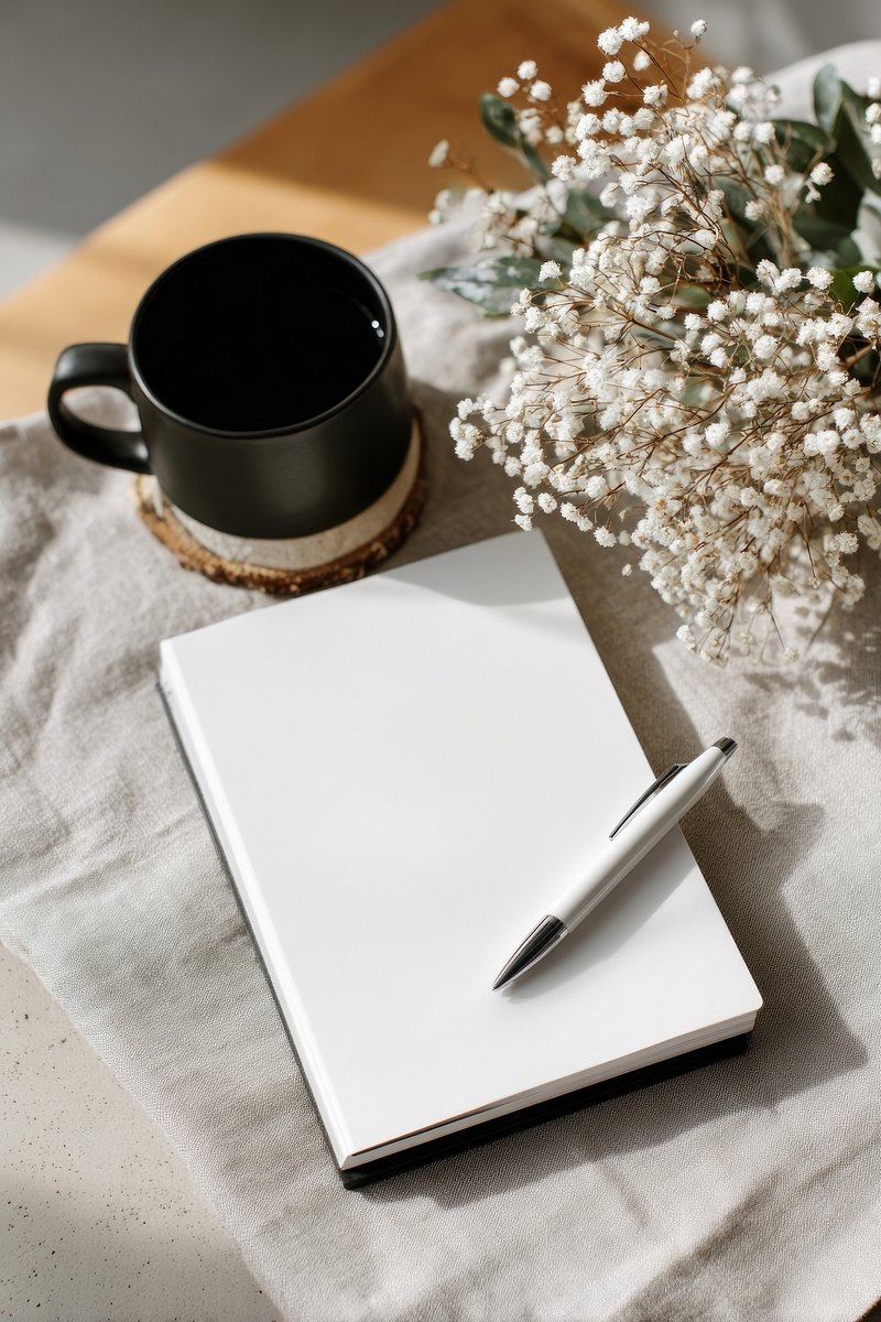 Notebook, pen, coffee, flowers, sunlight. https://www.rawpixel.com/image/23991476/notebook-pen-coffee-flowers-sunlightView license