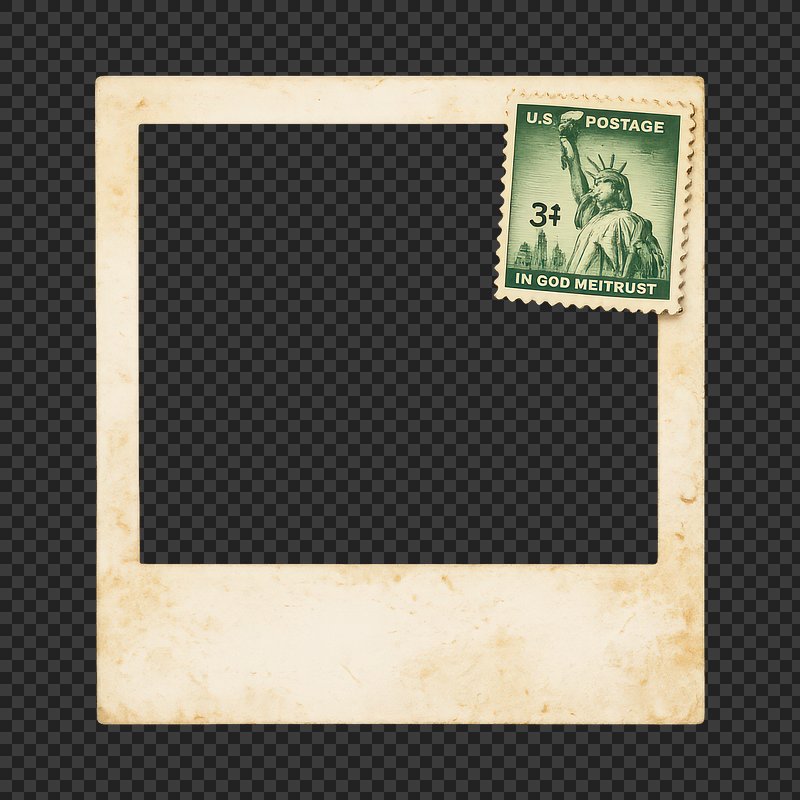 PNG Vintage frame with postage stamp. https://www.rawpixel.com/image/25722475/png-vintage-frame-with-postage-stampView license
