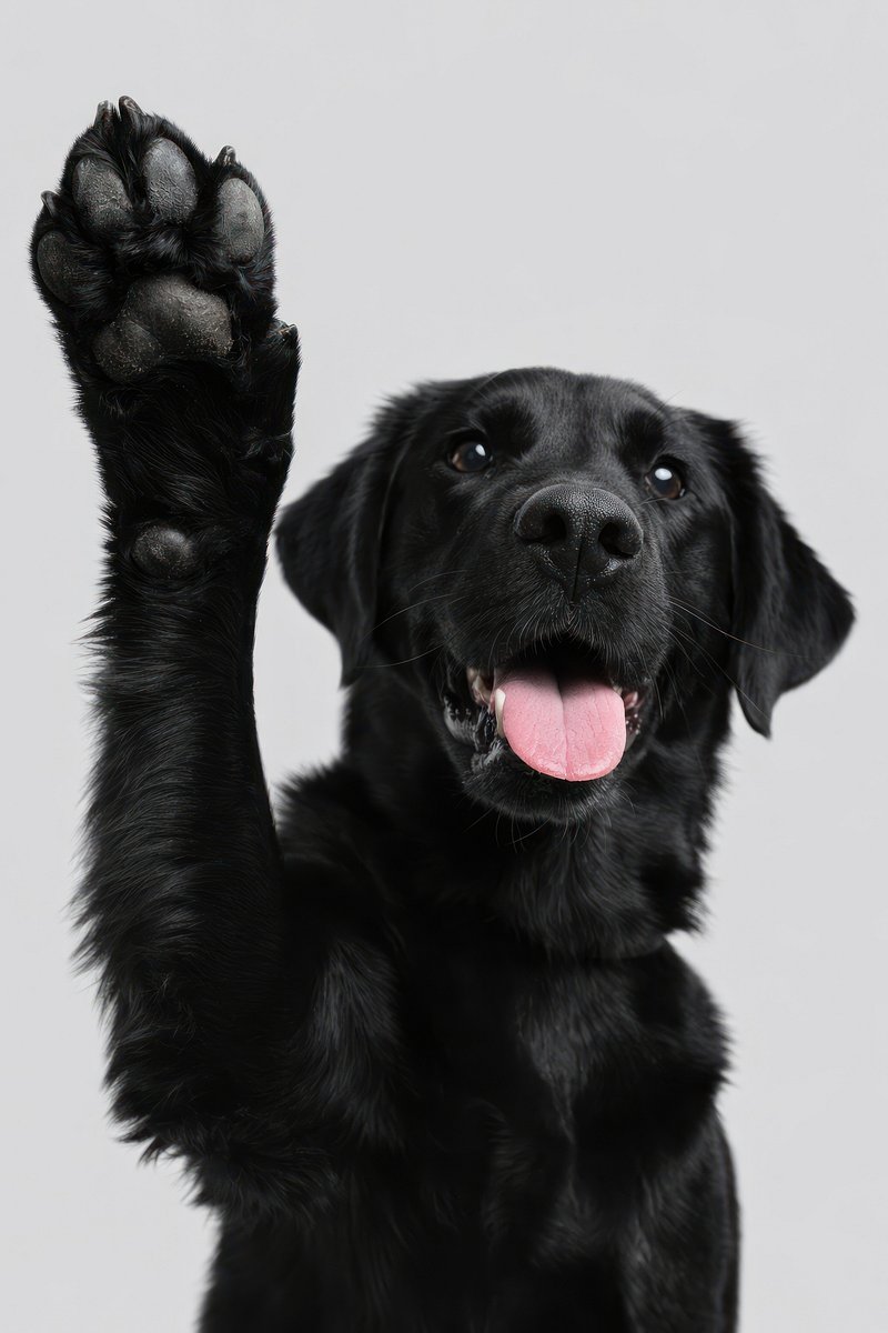 Playful black dog waving paw. https://www.rawpixel.com/image/25588656/playful-black-dog-waving-pawView license