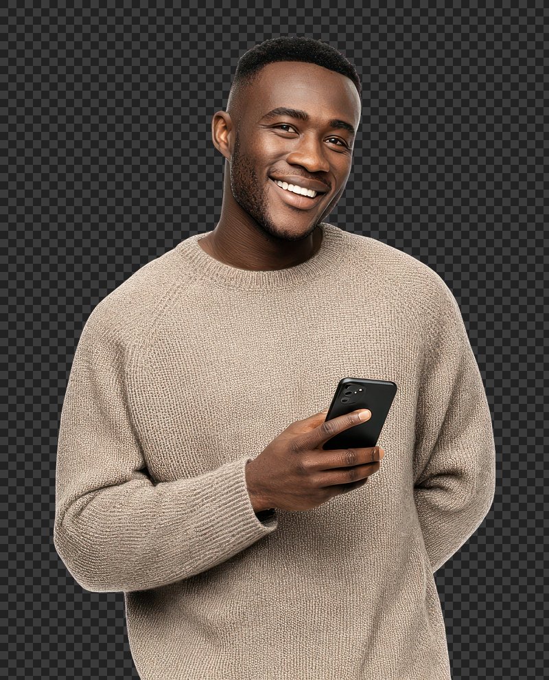 PNG Smiling man holding smartphone confidently. https://www.rawpixel.com/image/20886284/png-smiling-man-holding-smartphone-confidentlyView license