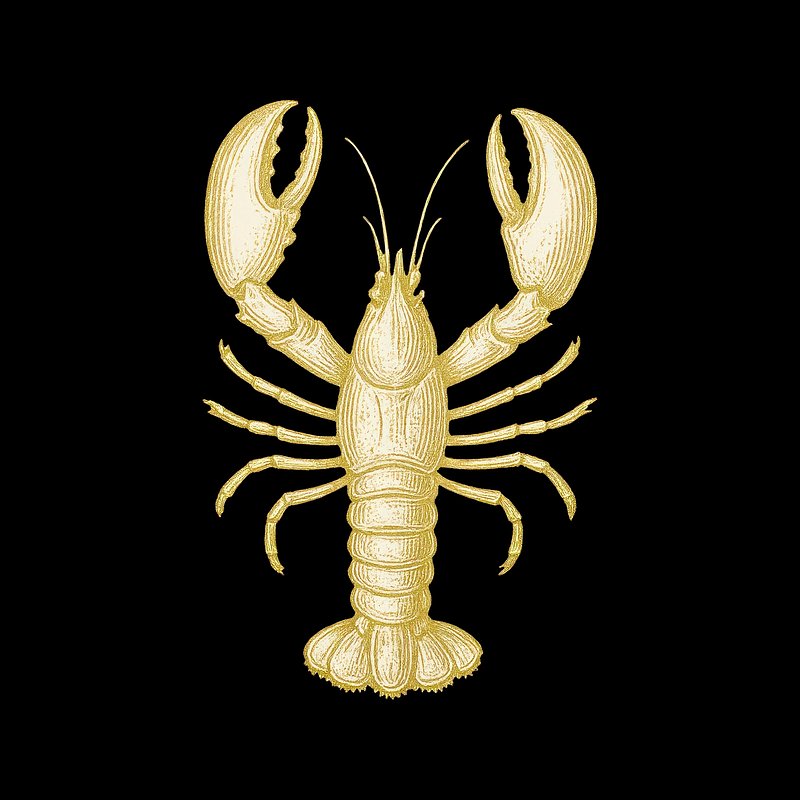 Golden lobster illustration on black. https://www.rawpixel.com/image/24537209/golden-lobster-illustration-blackView license