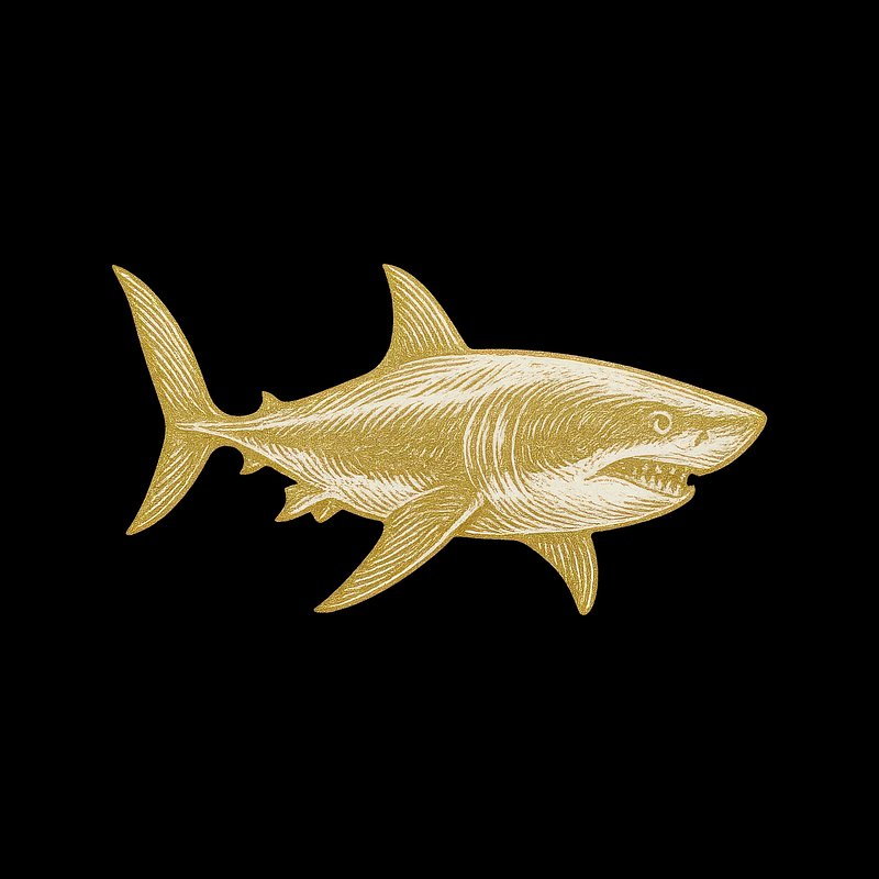 Golden shark illustration on black https://www.rawpixel.com/image/24537917/golden-shark-illustration-blackView license